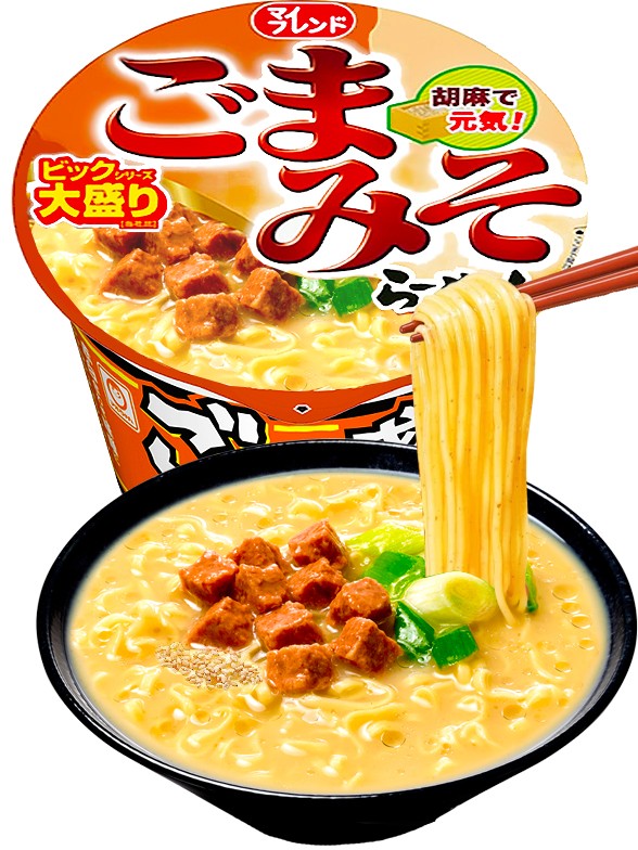 NOODLES: harina de TRIGO, aceite de palma, sal. SOPA: miso (SOJA), sal, SÉSAMO, especias, azúcar, carne picada condimentada (pollo, cerdo), extracto de cerdo, maíz, SOJA, extracto de pollo, cebolla, pimientos rojos, aceite de palma, dextrina, harina de TRIGO, potenciador de sabor E621, espesante E440, colorantes (E170, E150), pollo, antioxidantes (E307, E392), espesante E460, colorante de SEPIA, vitamina B2, vitamina B1. Contiene HUEVO.